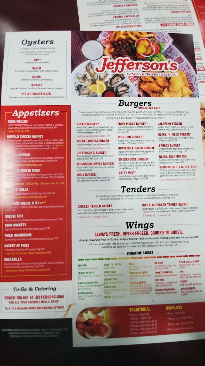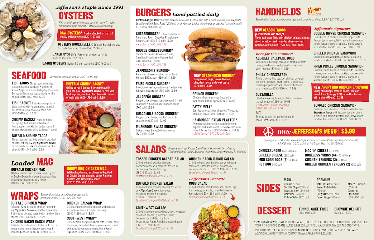 Welcome to Jefferson's - Fort Payne, a must-visit destination located at 616 Glenn Blvd SW, where flavor meets comfort in a vibrant atmosphere. Their menu is a feast for burger lovers, featuring highlights like the Hamburger Steak Platter and the indulgent Brunch Burger, complete with smoked bacon and an over-medium fried egg. Also worth noting is the succulent Steakhouse Burger, layered with crispy onion rings, smoky bacon, and zesty steak sauce.